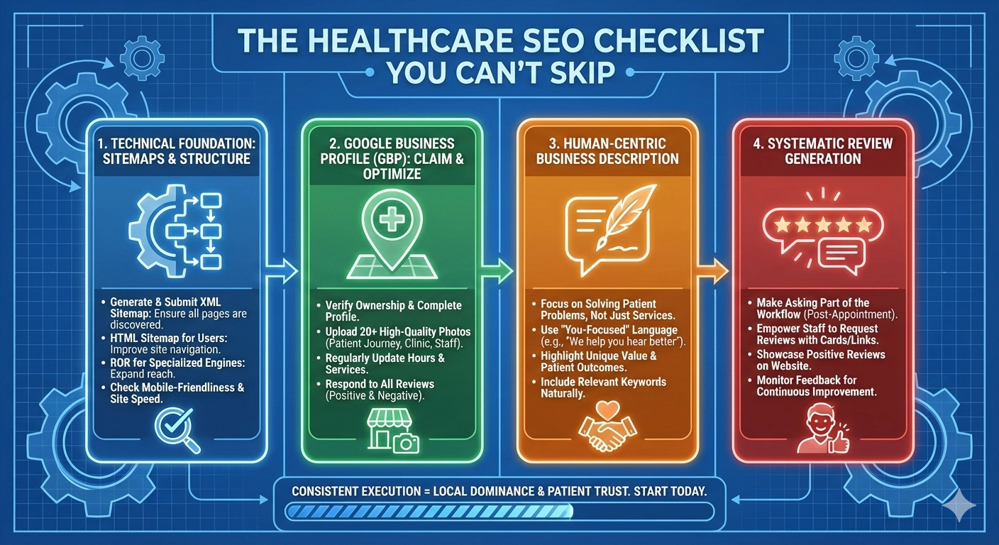 Technical SEO sounds intimidating, but it’s really just a checklist. The problem is most healthcare entrepreneurs either ignore it completely or pay agencies ₹50,000 for work they could do themselves in an afternoon.